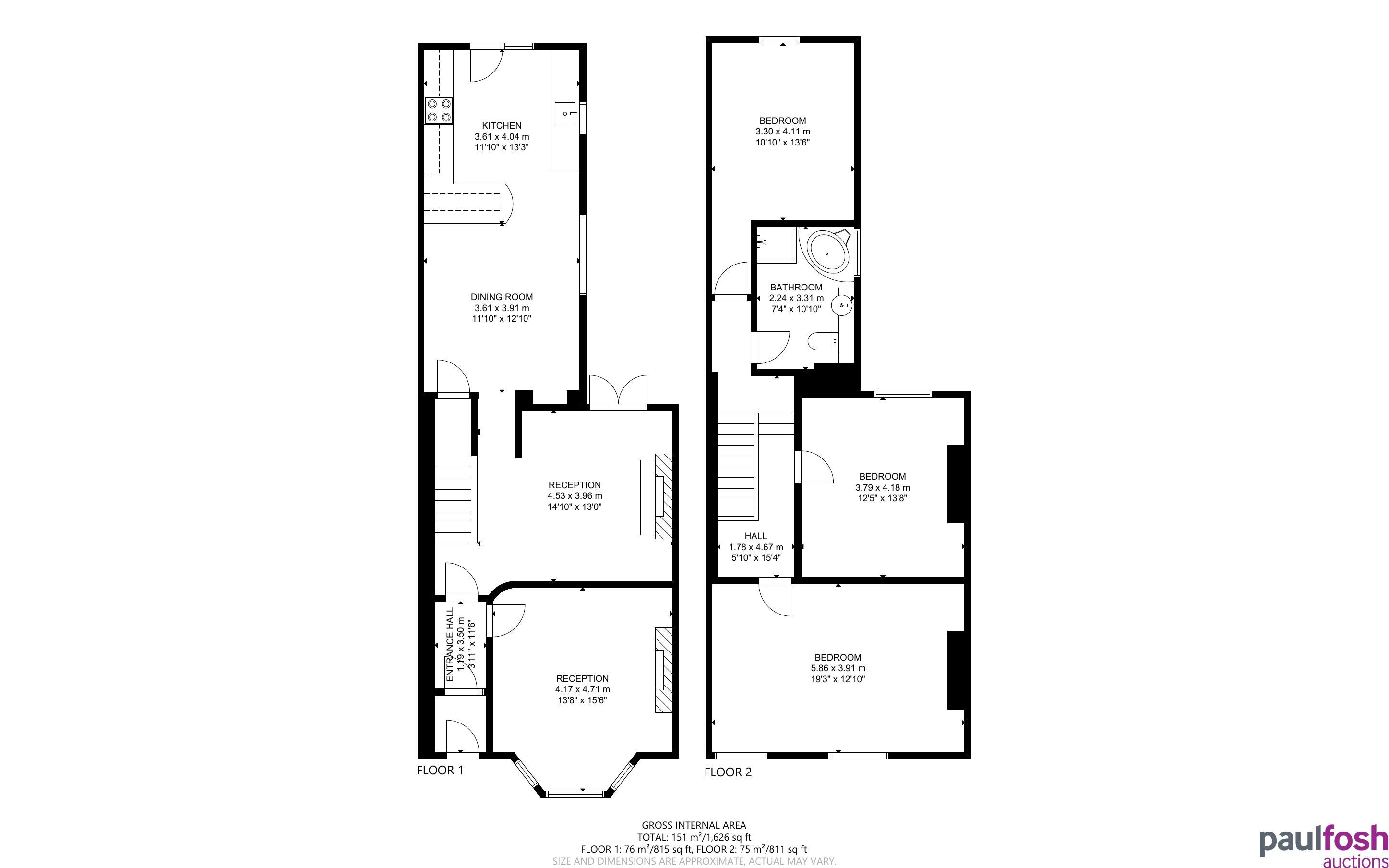 Ground Floor: Hallway, 2 reception rooms, kitchen/dining room
