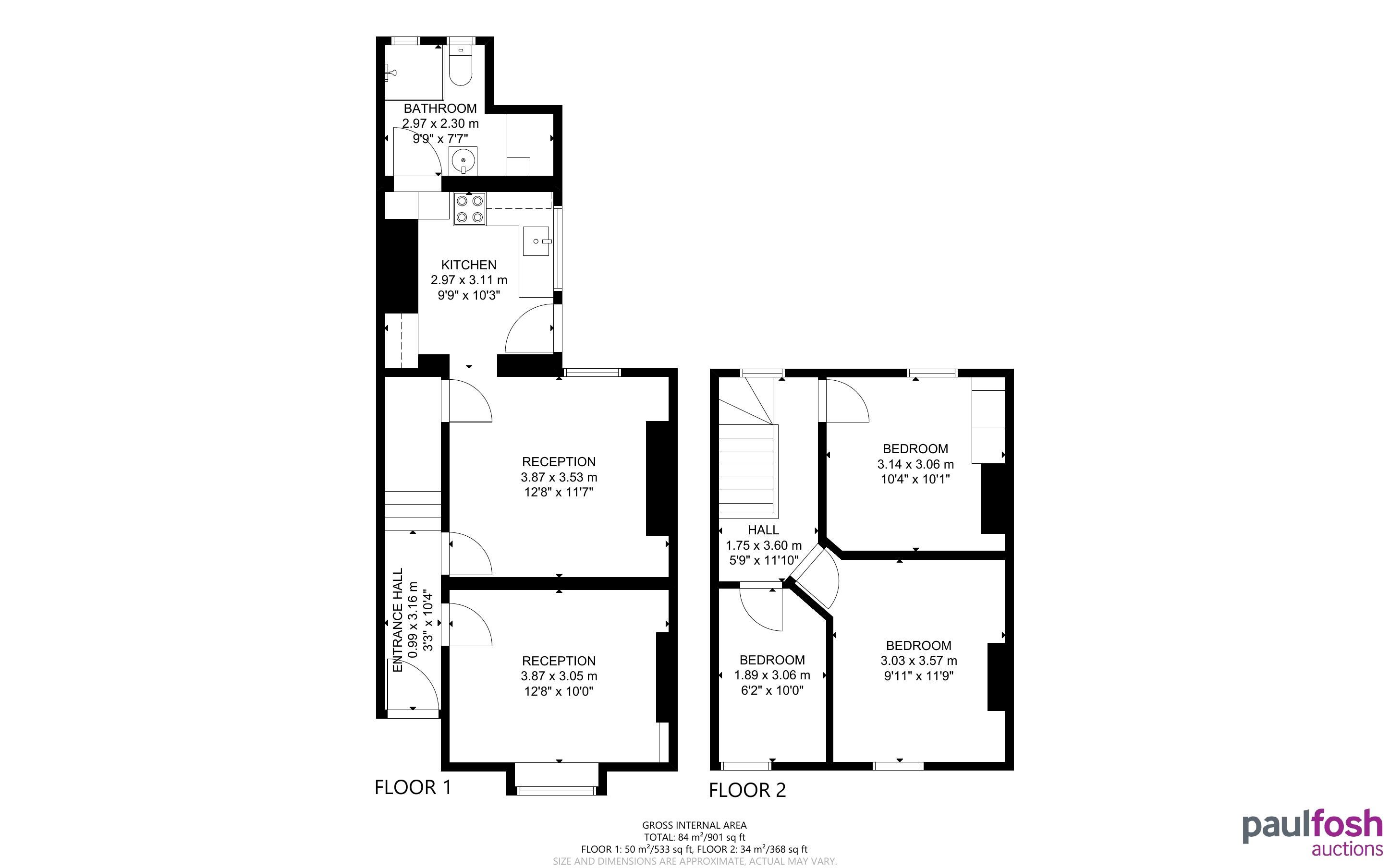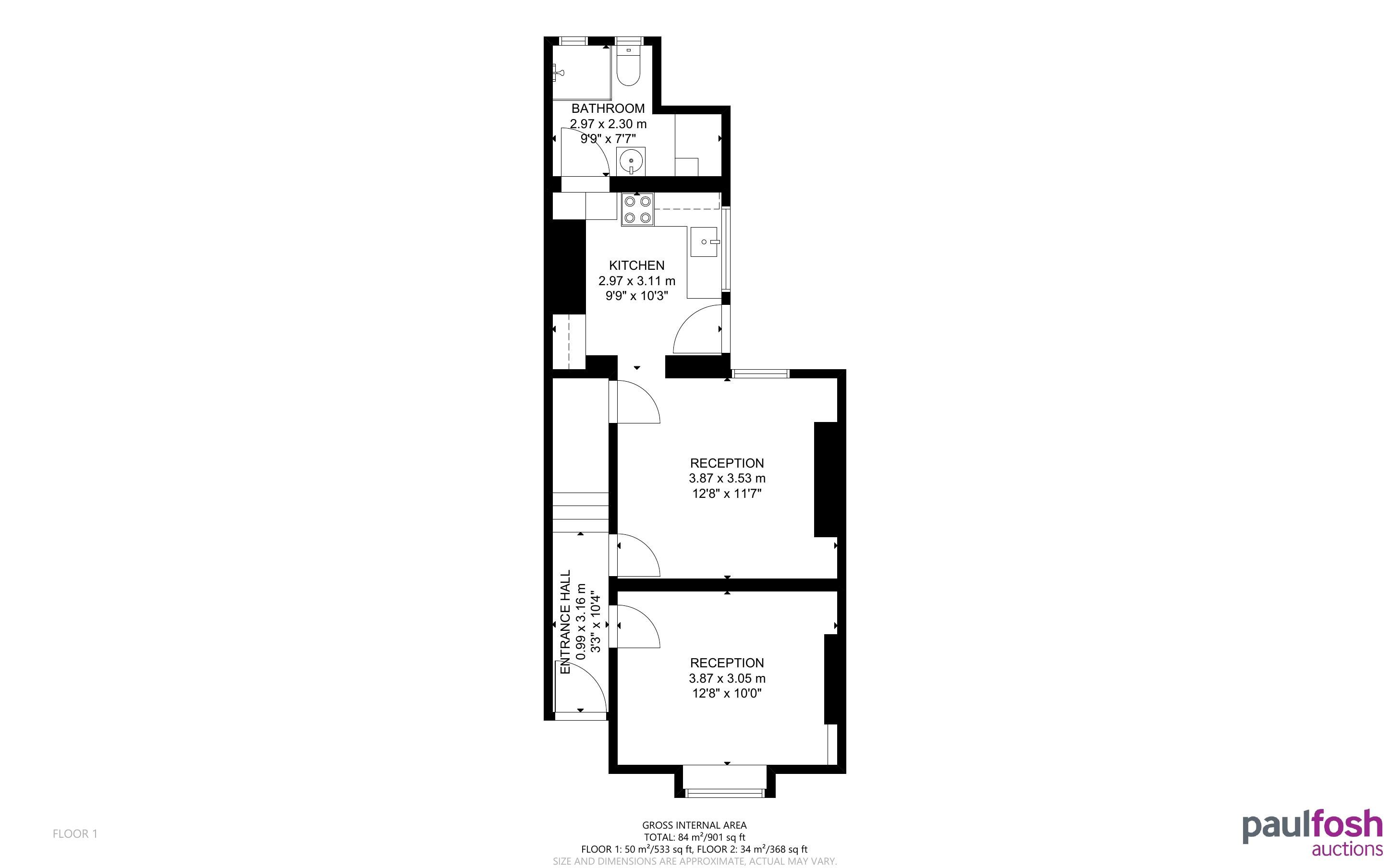 Ground Floor: Entrance, 2 reception rooms, kitchen, bathroom