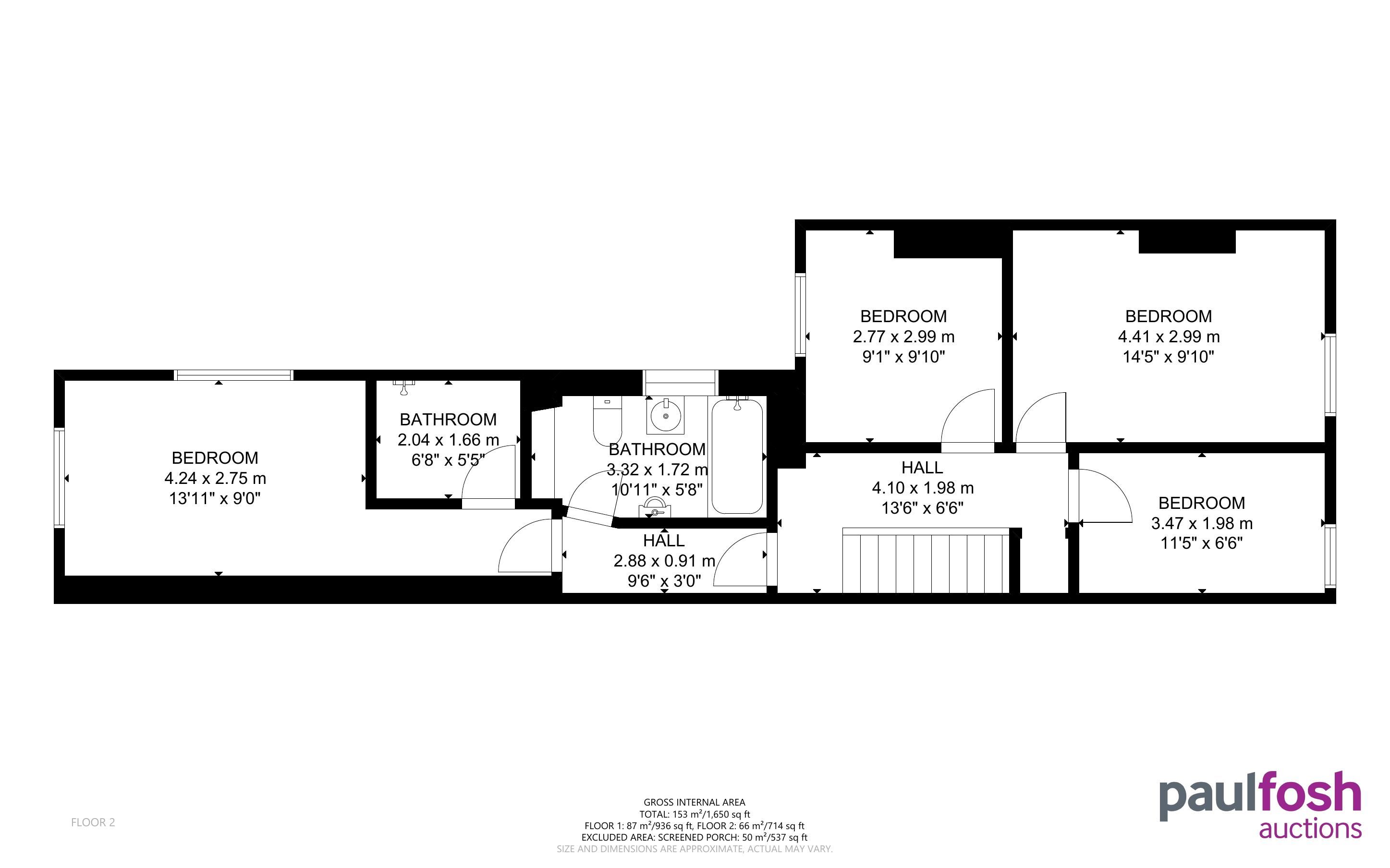 First Floor: 4 bedrooms, bathroom