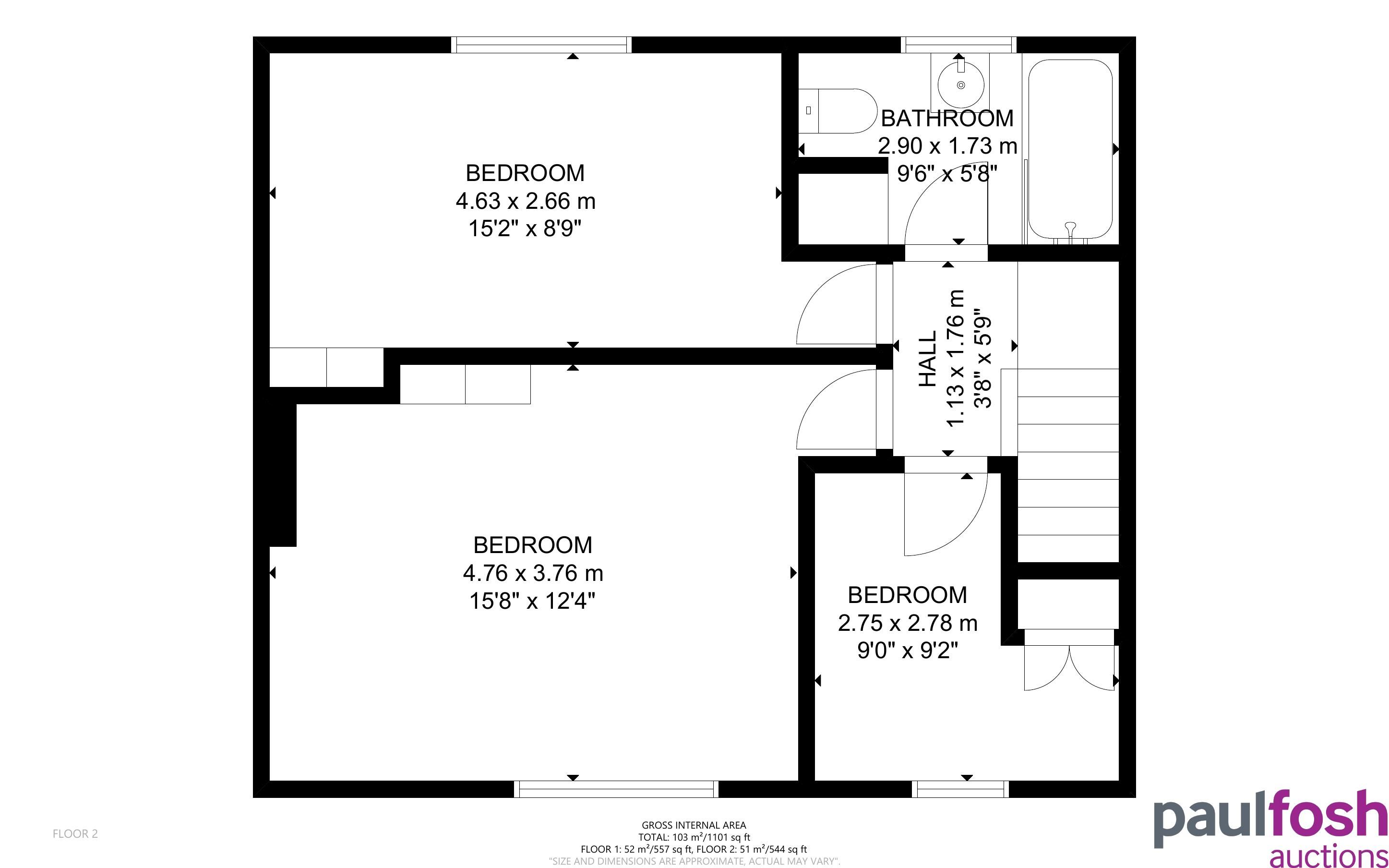 First Floor: Landing Beds 1 2 3 bathroom