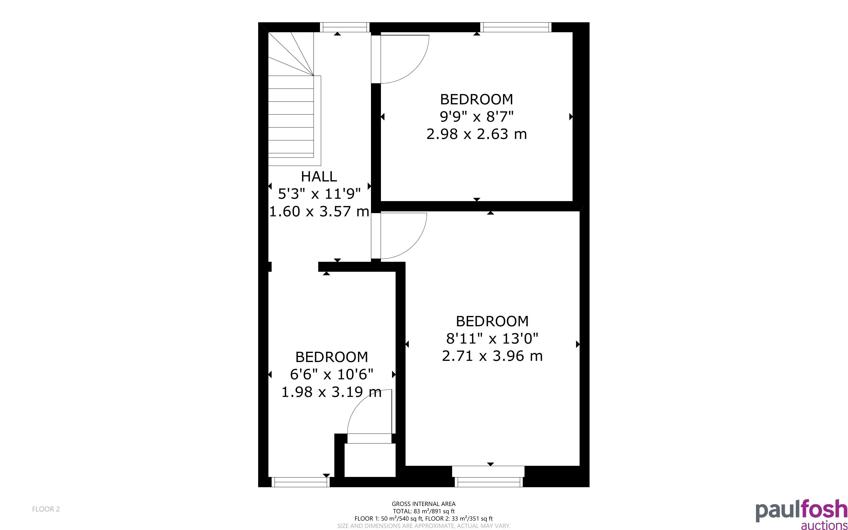 First Floor: Landing, 3 bedrooms