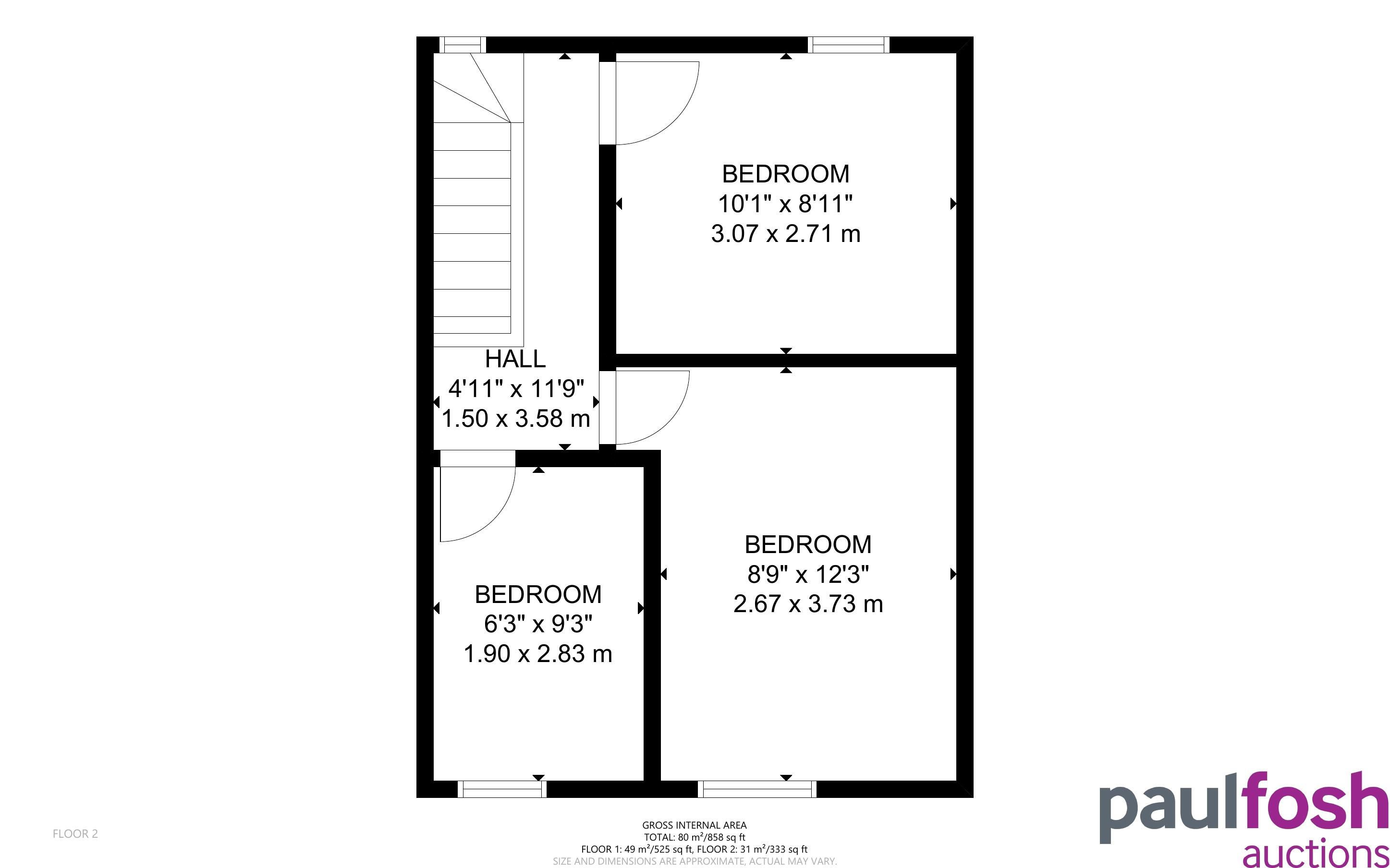 First Floor: Landing, 3 bedrooms
