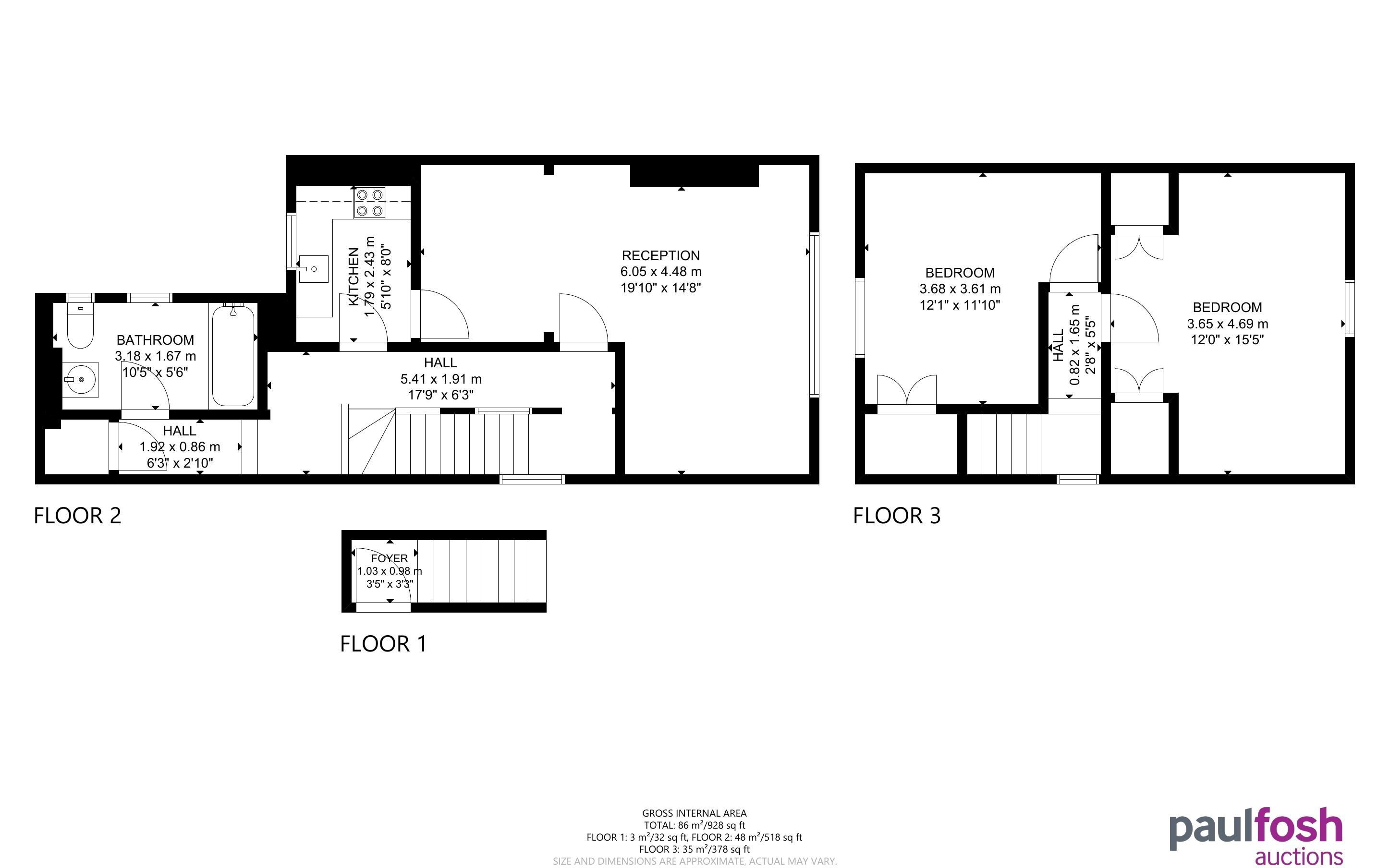 To be sold with vacant possession but could let at £500 pcm (£6000 p/a)