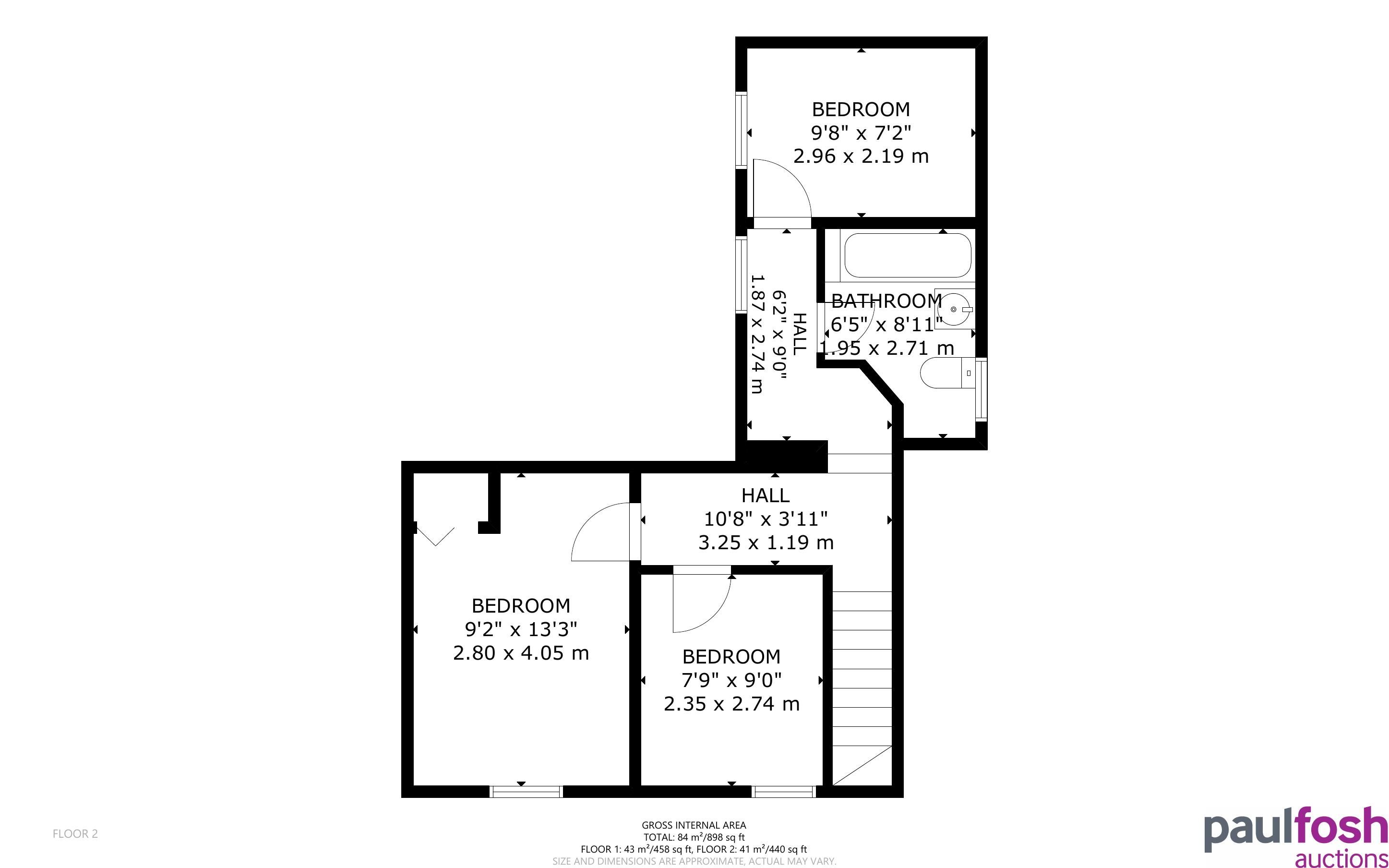 First Floor: 3 bedrooms, bathroom
