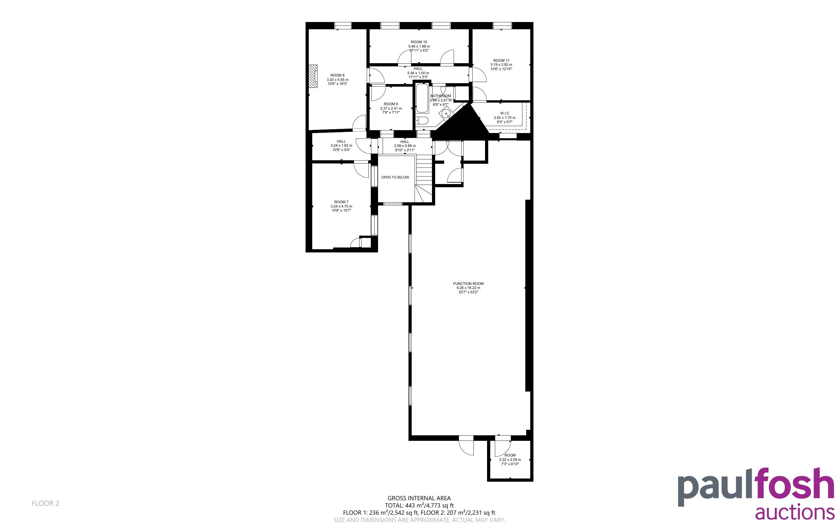 First Floor: Function hall, former flat area