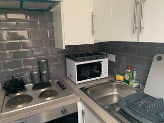 First Floor: Open plan bedroom/kitchen/dining room, private shower room via communal staircase area