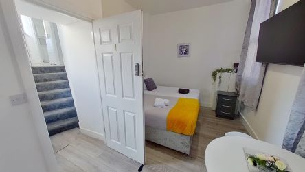 A three storey end of terraced town house within walking distance of the local shops. The property has been converted to a high standard and provides 3 flats over three floors – currently run as an Airbnb. Each flat provides open plan bed/dining rooms, kitchens and shower rooms. We are informed that the property, x 3 flats at full capacity, achieves £2,100 pcm. The property could provide HMO accommodation subject the necessary change of use consents.