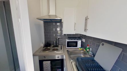Second Floor: Open plan bedroom/kitchen/dining room, private shower room via communal staircase area
