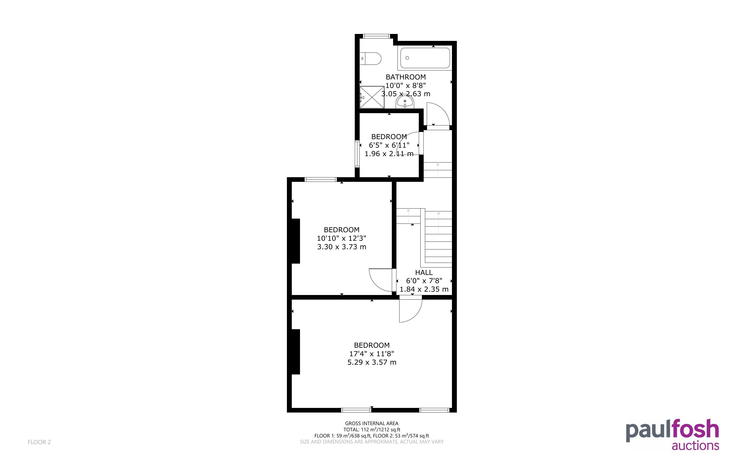 First Floor: Landing, 2 bedrooms, storage room, bathroom (scope to reconfigure to 3 beds)