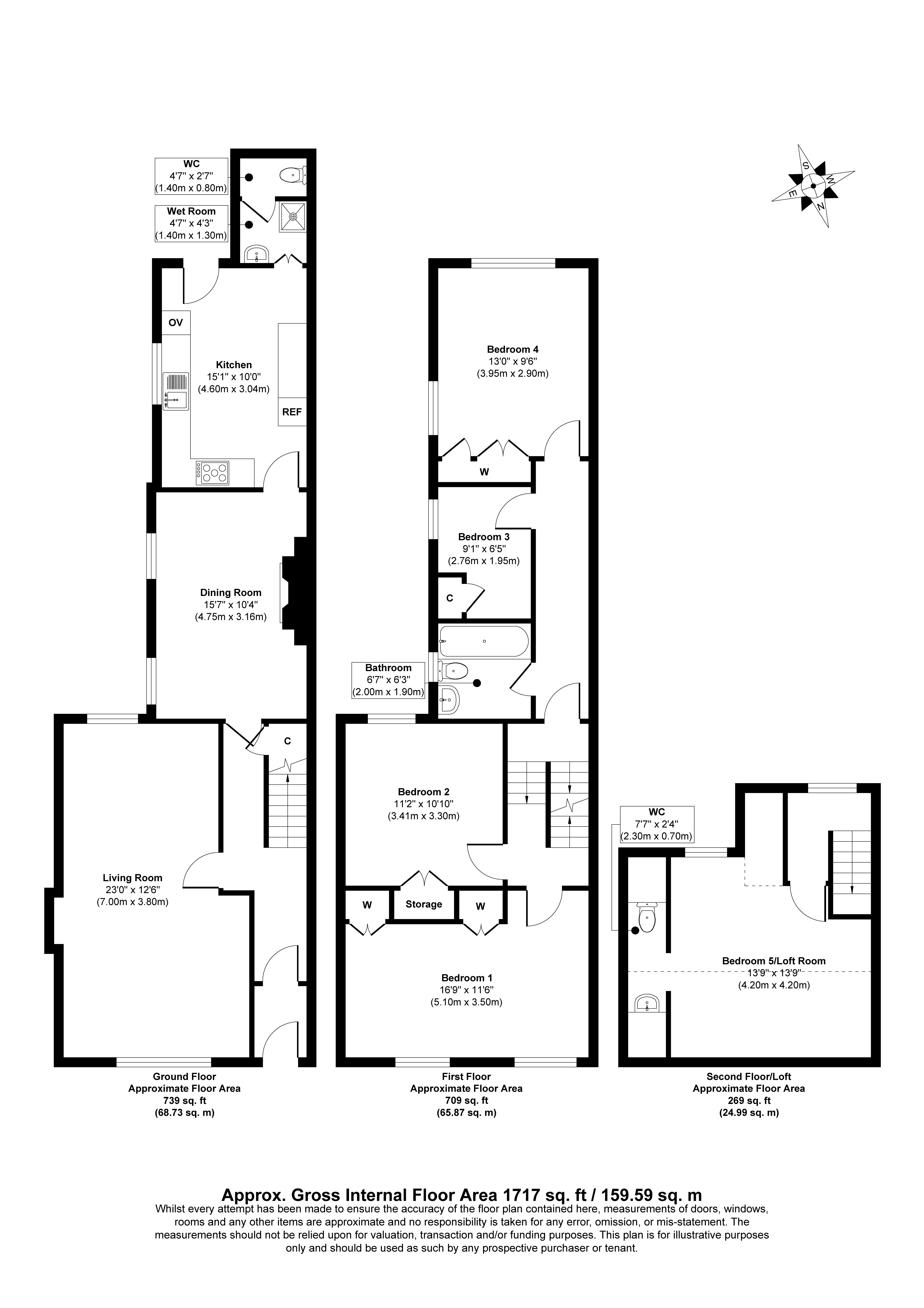 On the first floor there are four bedrooms and family bathroom. The top floor offers a loft room with WC.