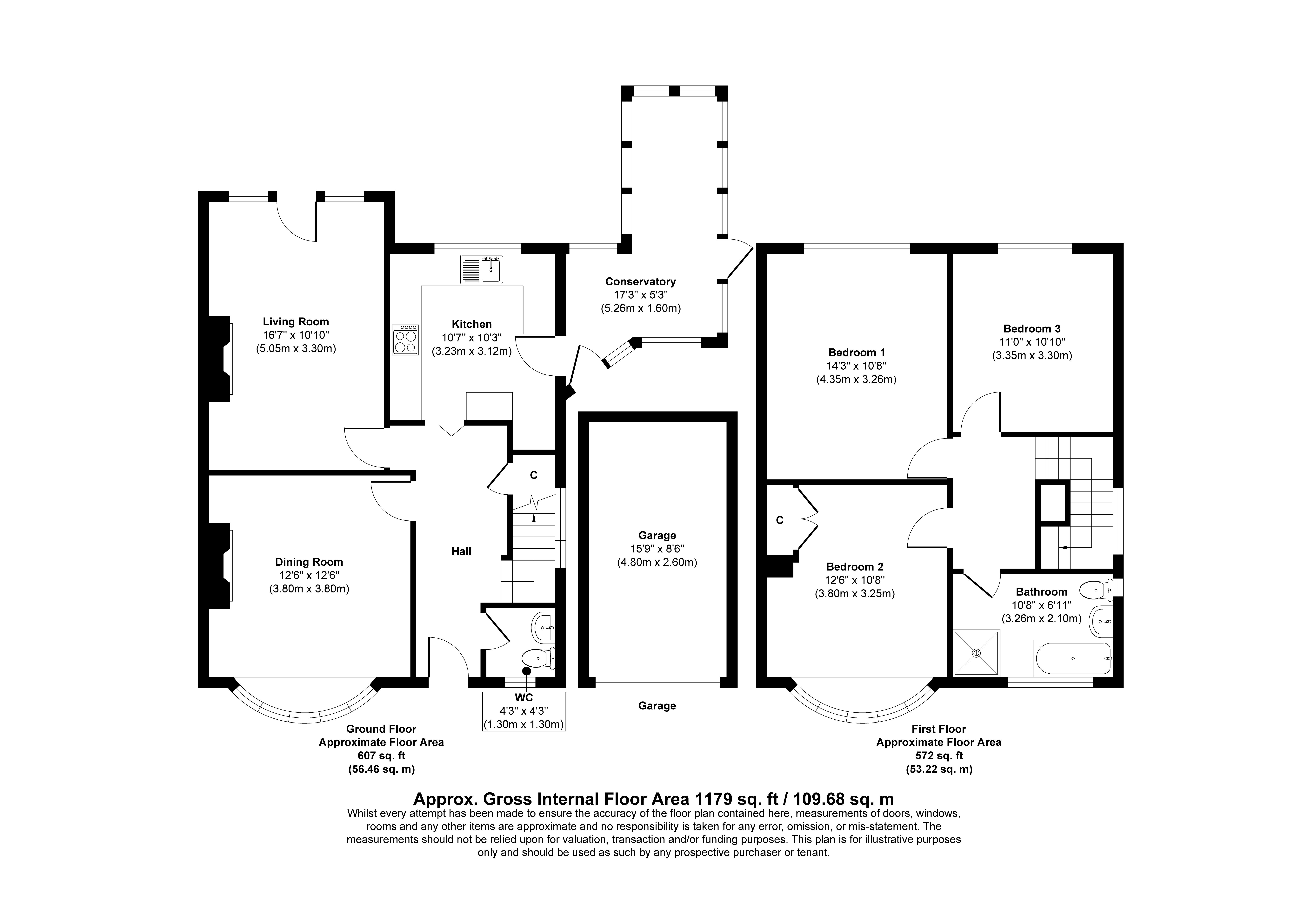 Ground Floor: Entrance hallway. lounge, dining room, kitchen, conservatory, cloakroom